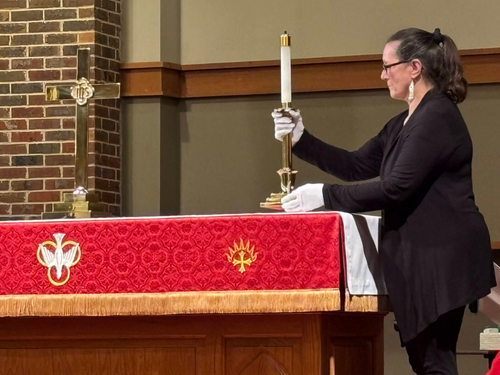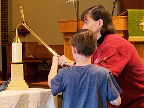 Typically a young member of the congregation, acolytes light and extinguish candles on the altar before and after services and assist the pastor during communion.