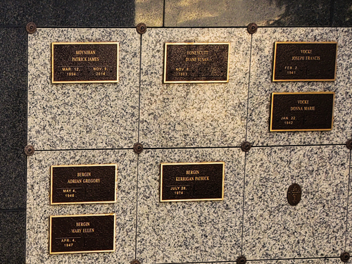 The ashes reposed in the walls of the Columbarium are commended to the glory of God and a reminder to all that we one day will experience the Resurrection.